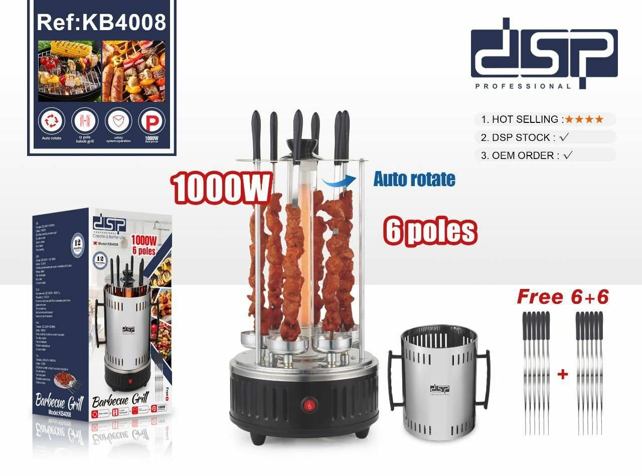 10 цен на Электрошашлычница с 6 шампурами DSP 4008, мощность 1000Вт