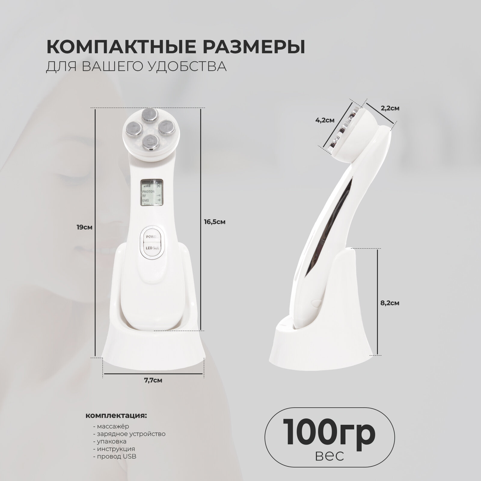 Массажер для лица и шеи микротоковый RF-EMS лифтинг