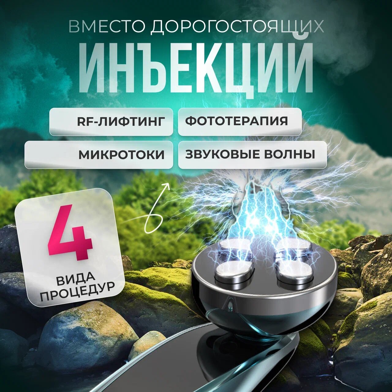 | Принцип работы | RF-лифтинг / вибрация / микротоки / светотерапия |