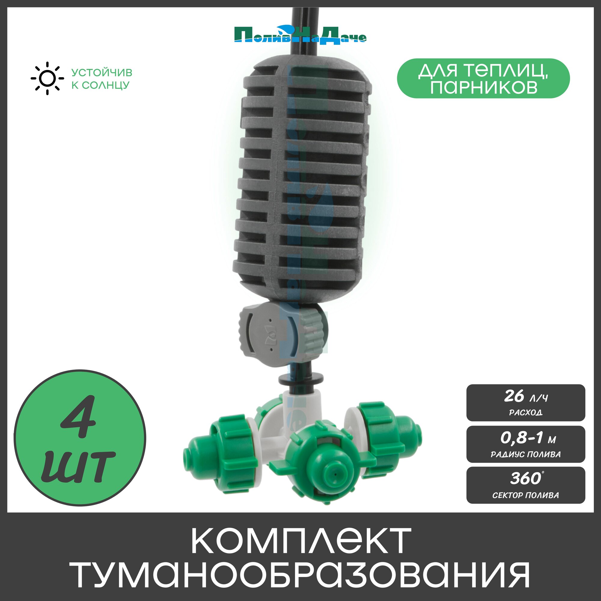 10 цен на Туманообразователь для теплиц, фоггер, разбрызгиватель, дождеватель на 4 форсунки - 4 комплекта