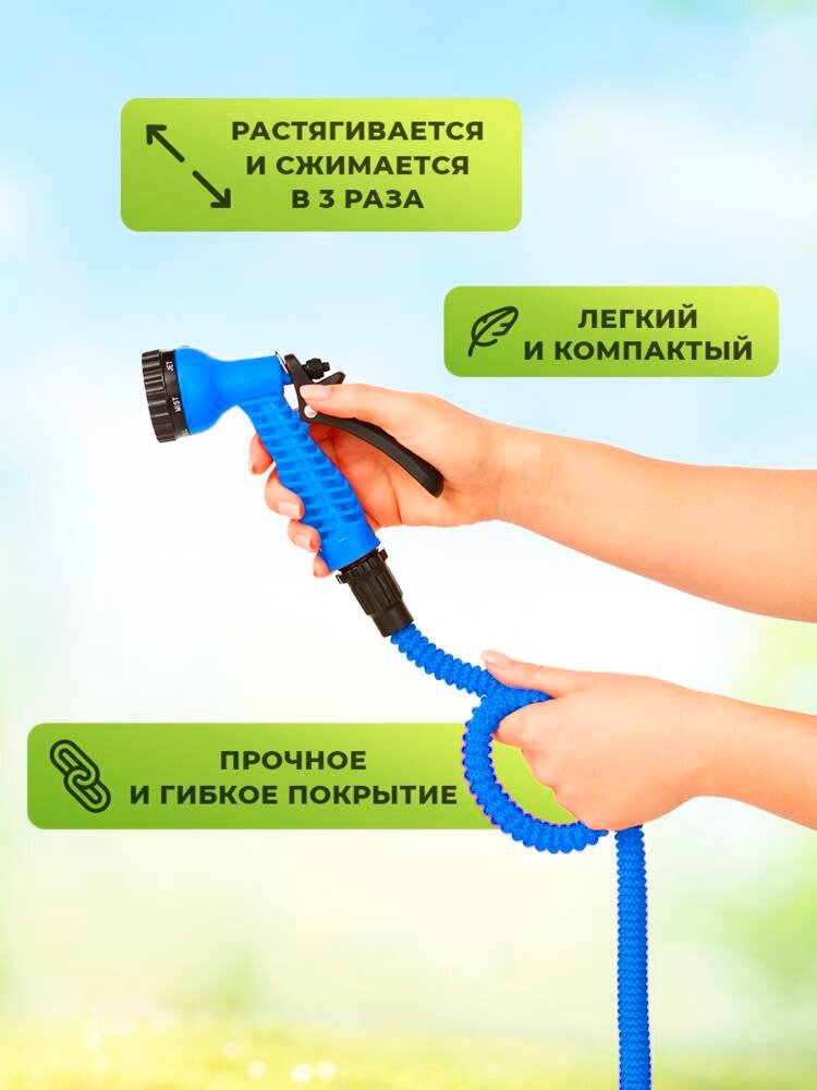 Шланг садовый растягивающийся для полива и мойки автомобиля