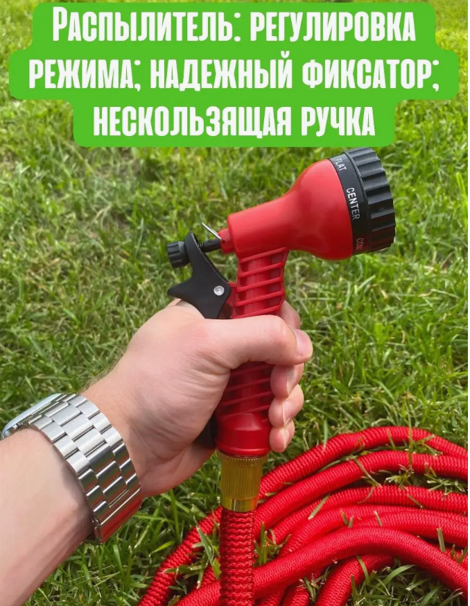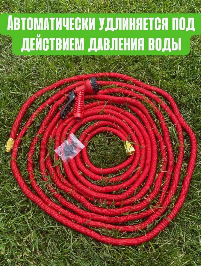 Отзывы на Шланг садовый красный растягивающийся 37 метров для полива с распылителем, с металлическим соединениям\Красный turbyshlang