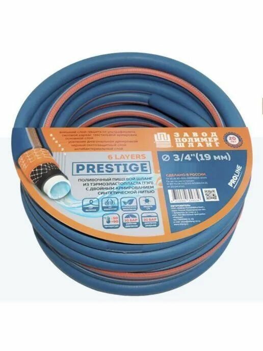 Шланг для полива "PRESTIGE", 3/4 дюйма, 25 метров, 6 слоев, ТЭП, цвет синий/оранжевый 7 238 ₽