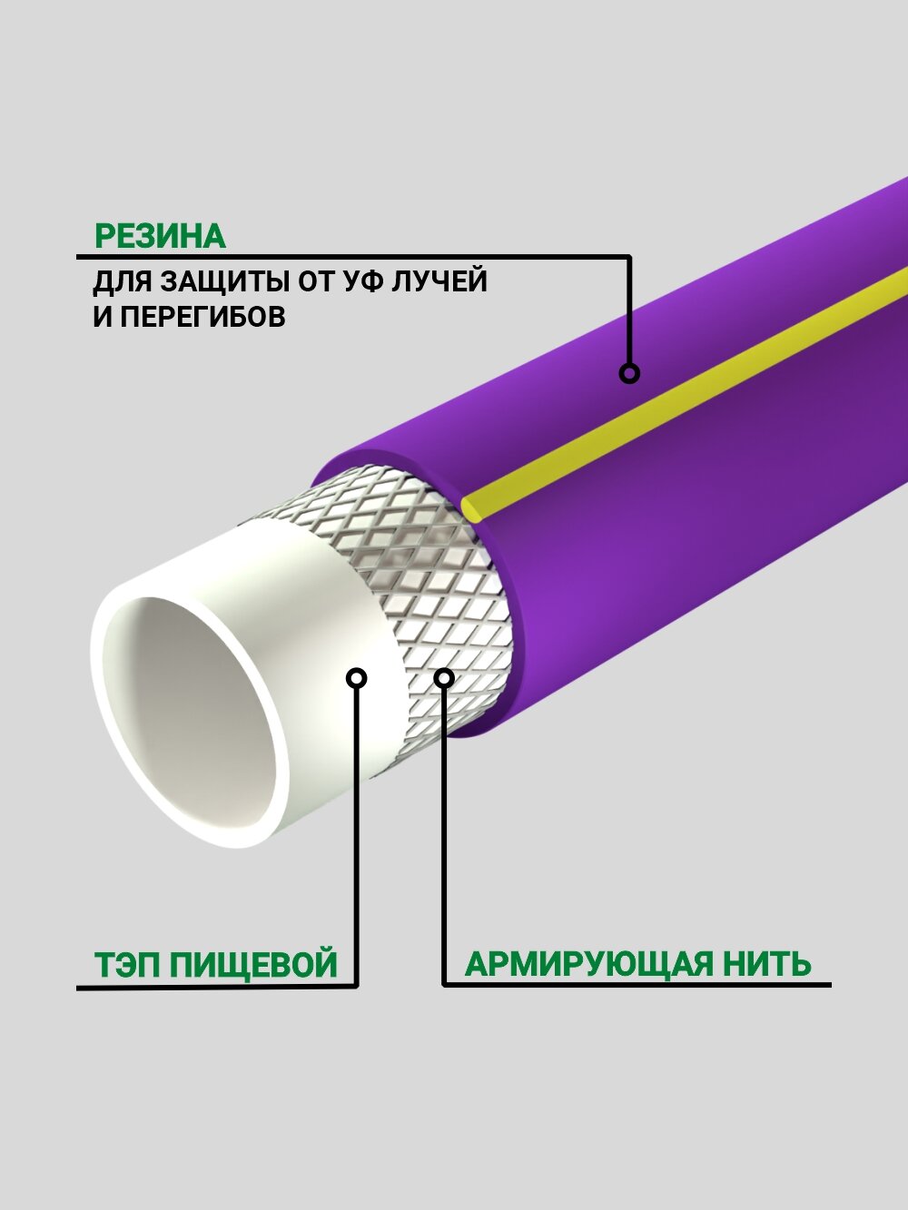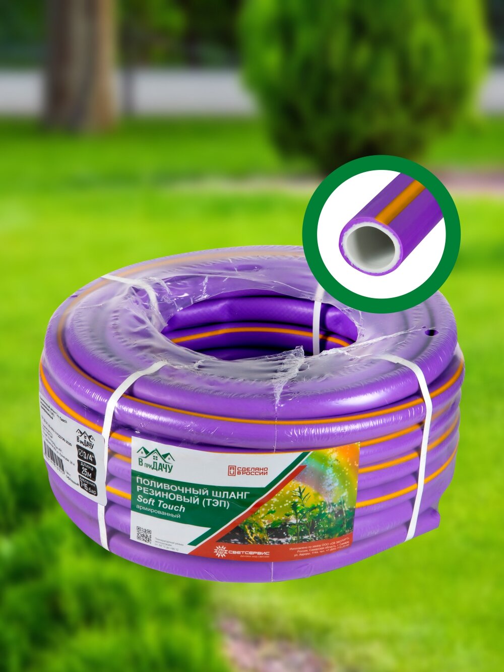 Шланг поливочный Резиновый (ТЭП) Soft Touch армированный, 3/4", 25 м, сиреневый, давление 7-15 бар. В придачу информация: