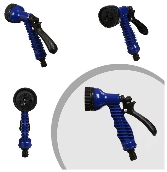 Чудо-шланг, латекс, L = 2.5 — 7.5 м, 2-слойный, нейлоновая оплётка, распылитель 7 режимов, переходник 12 мм (1/2"), 19 мм (3/4")