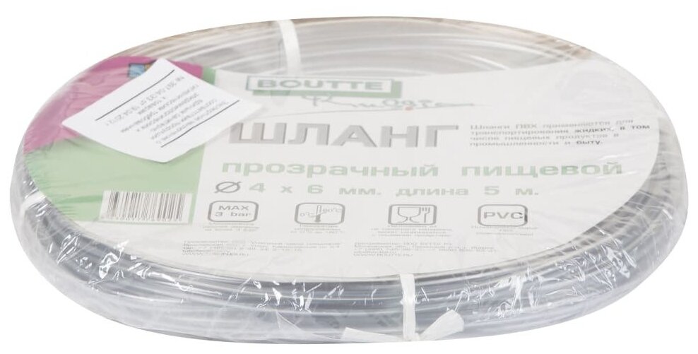 Шланг прозрачный BOUTTE ø4 мм 5 м, ПВХ информация: