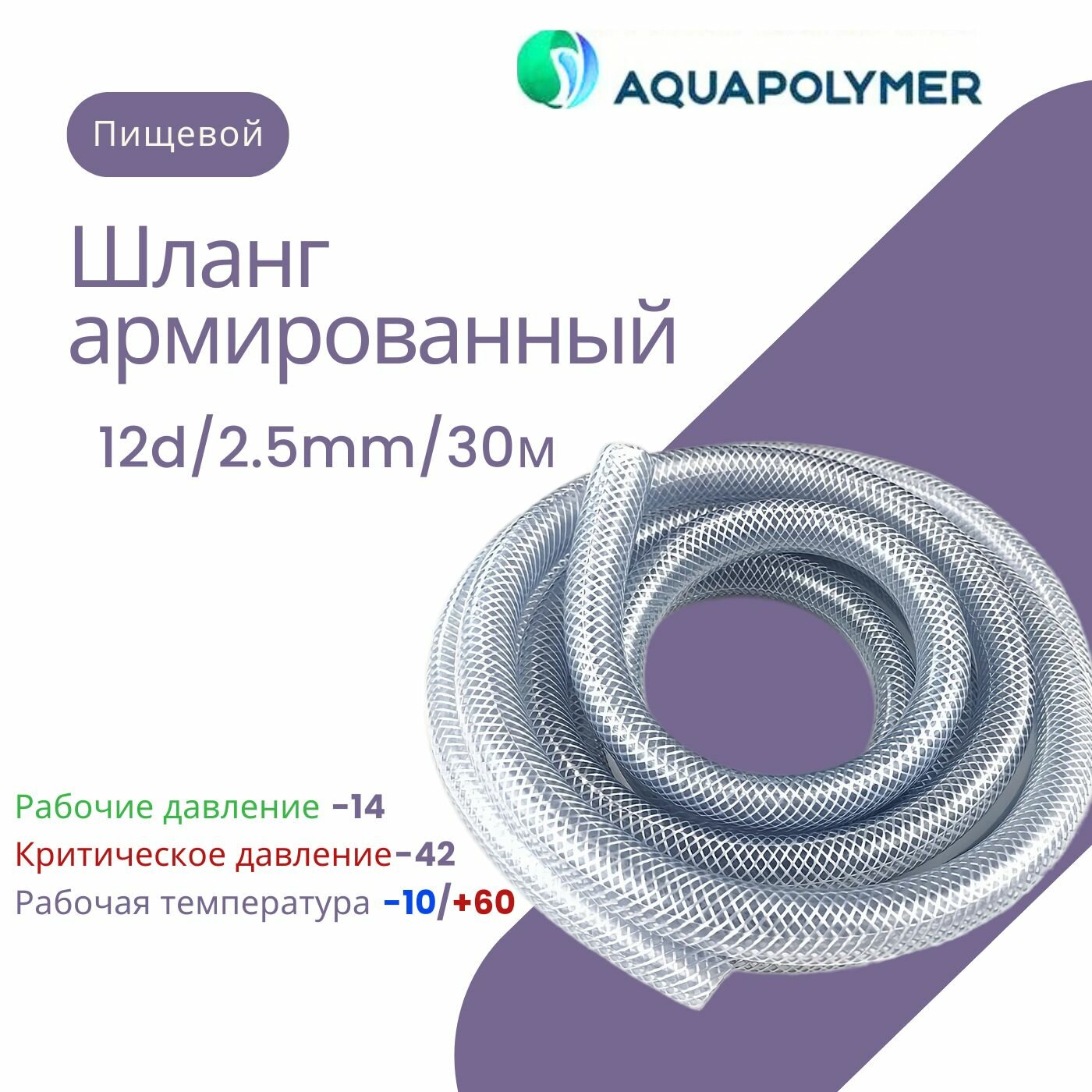 Шланг армированный пищевой прозрачный - Aquapolymer 12d/2.5mm/30m информация: