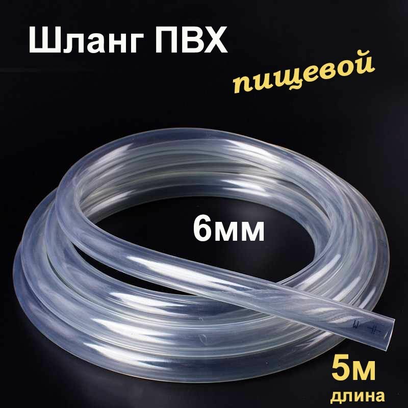 Шланг ПВХ внутренний диаметр 6 мм (5 метров), прозрачный, пищевая трубка, пвх трубка информация: