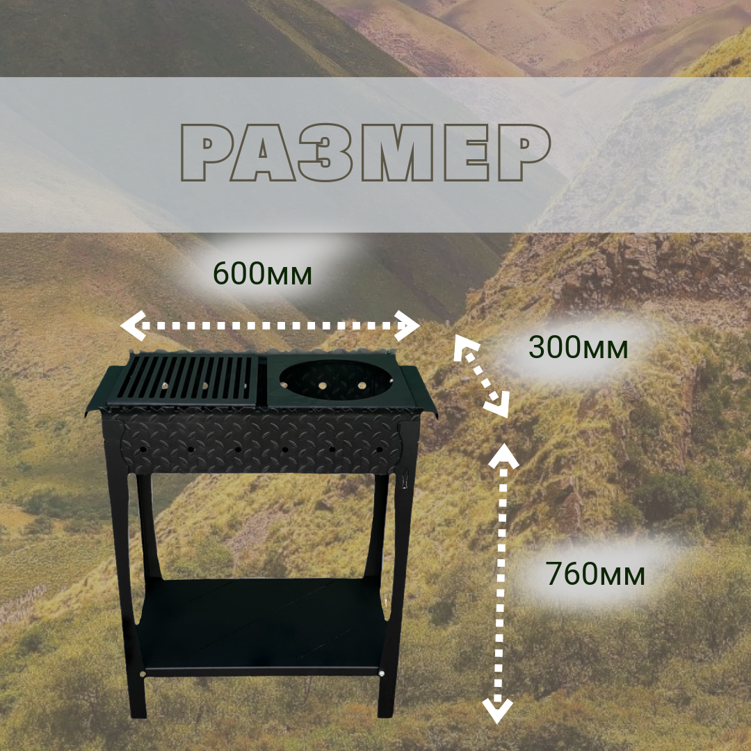 10 цен на Мангал 600 мм с полкой-решёткой, полкой под казан и полкой под дрова сталь 3 мм разборный