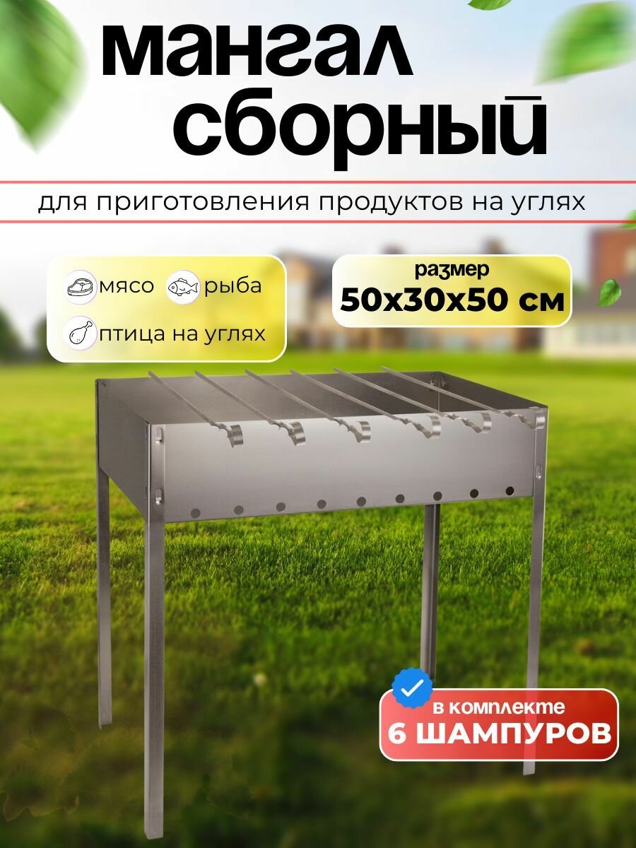 Мангал складной многоразовый походный для дачи 50х30см (0,5мм) с шампурами информация: