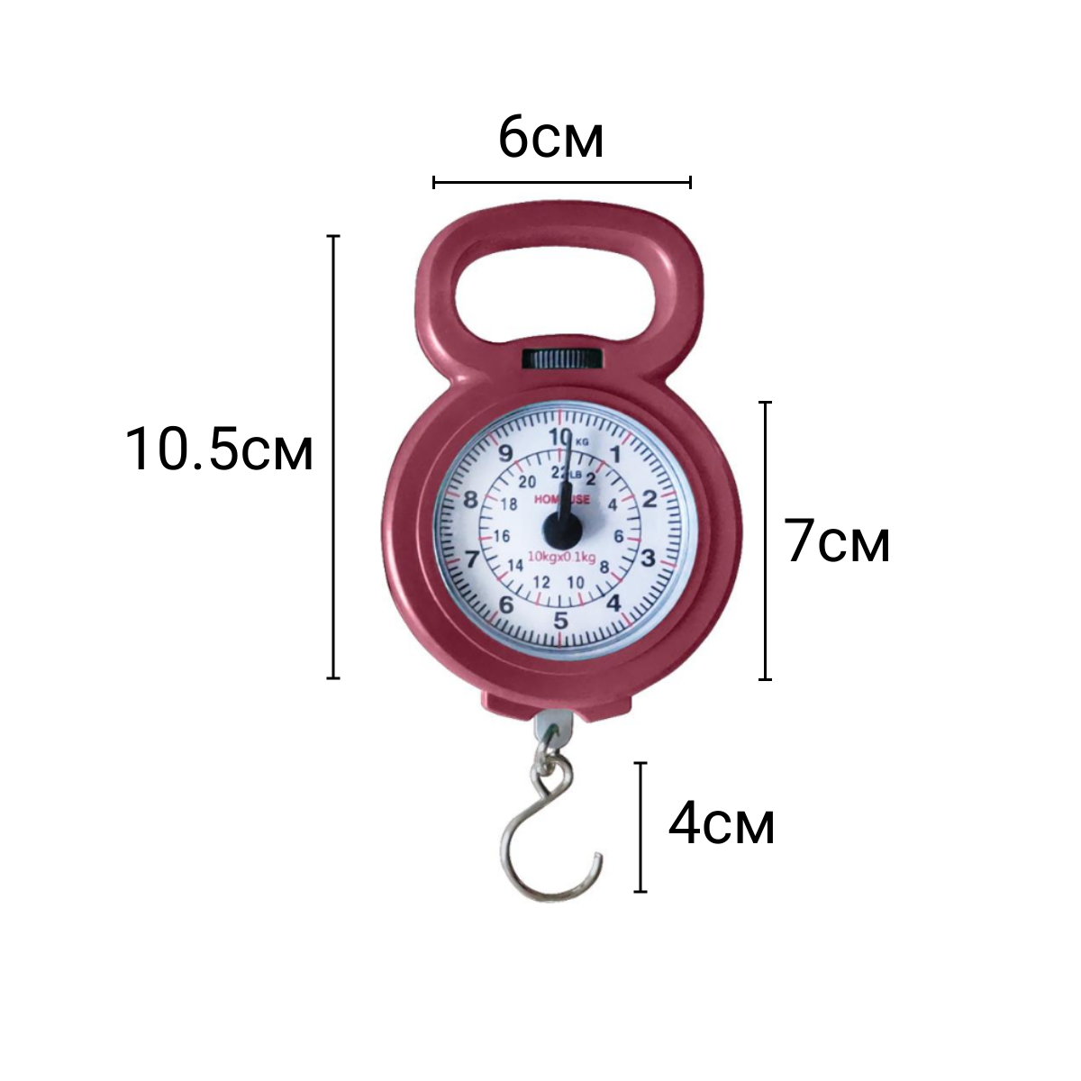 Весы ручные с циферблатом до 10кг цвет красный. информация: