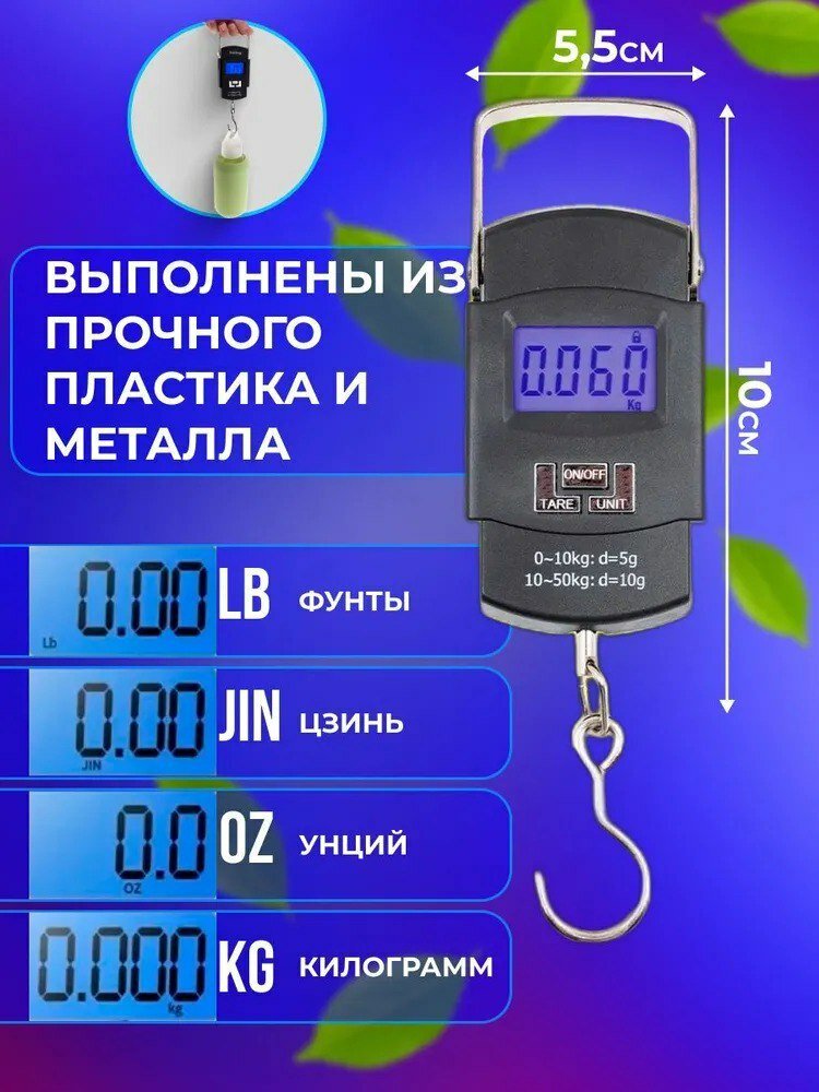 Ручные электронные весы безмен с крючком и дисплеем универсальные до 50кг