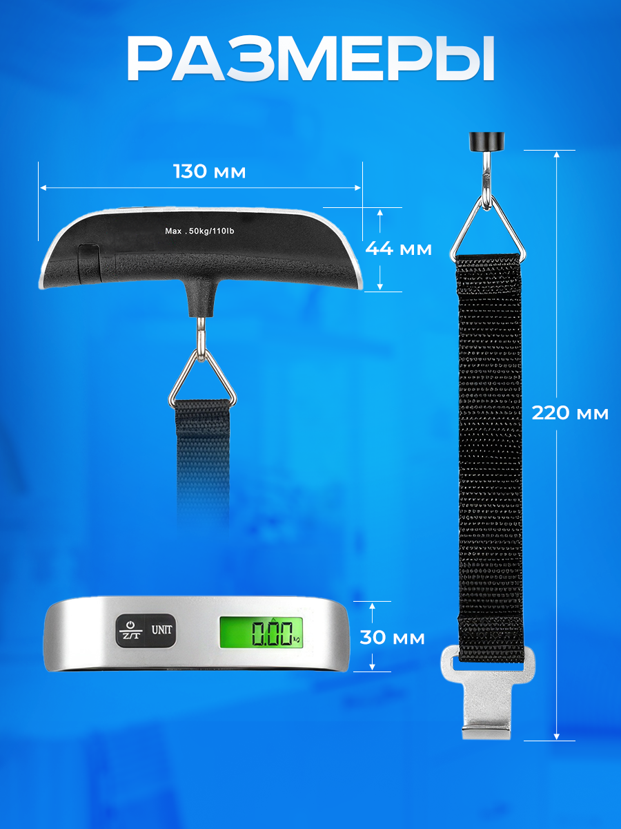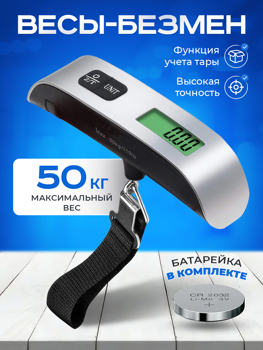 Весы электронные ручные, безмен электронный для багажа, чемоданов, рыбалки и путешествия до 50 кг
