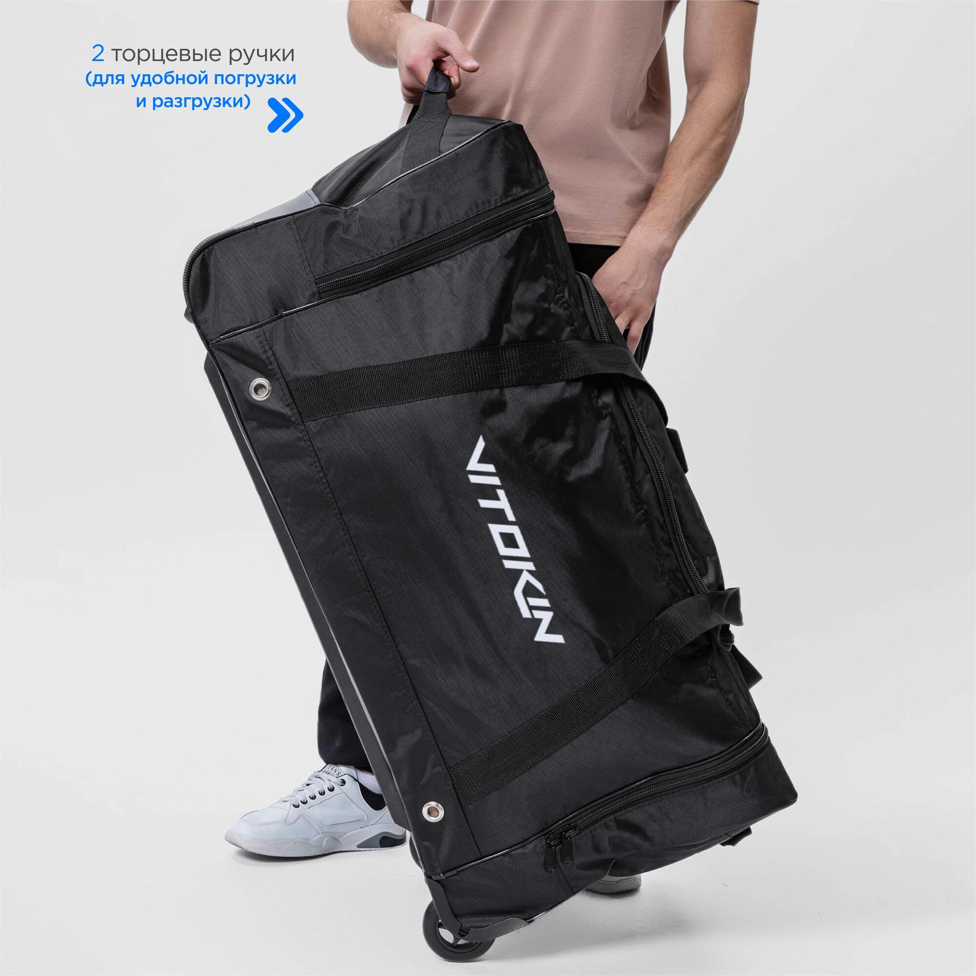 Баул на колесах хоккейный с карманами и ручкой VITOKIN, размер 34" взрослый черный информация: