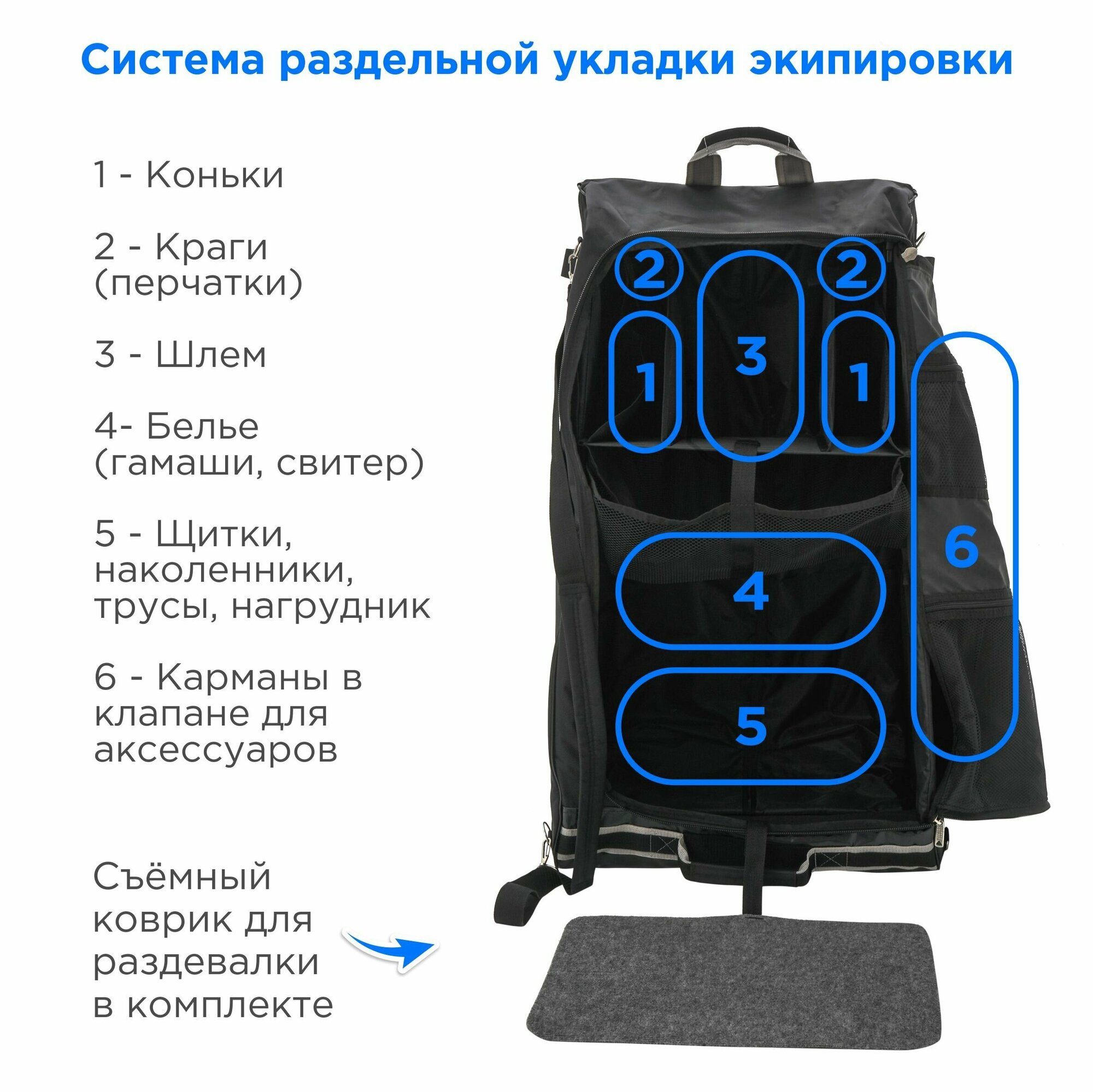 | Назначение карманов/отделений | для бутылки / для коньков/роликов / для креплений / для телефона / для шлема |