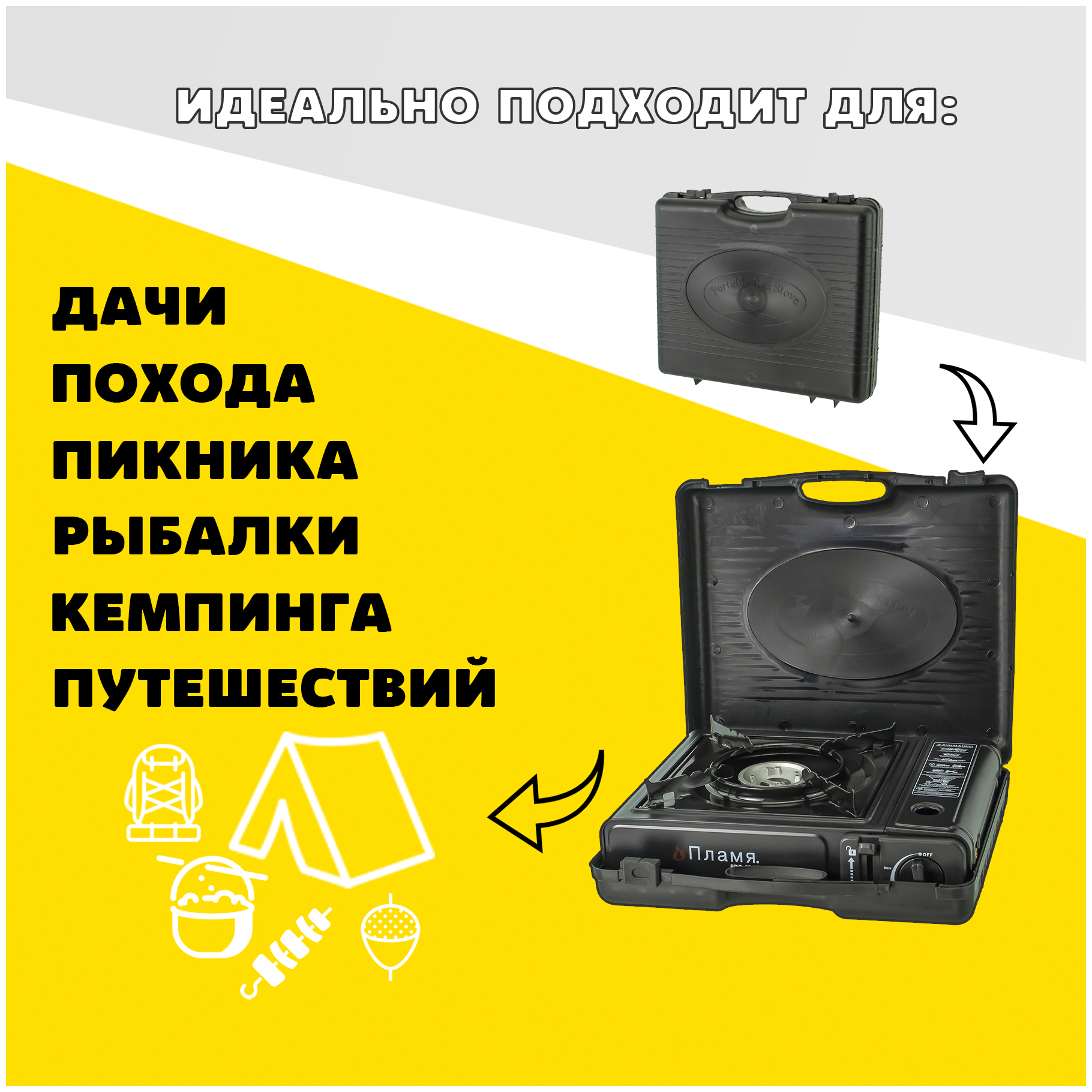 Газовая плита туристическая в кейсе с переходником информация:
