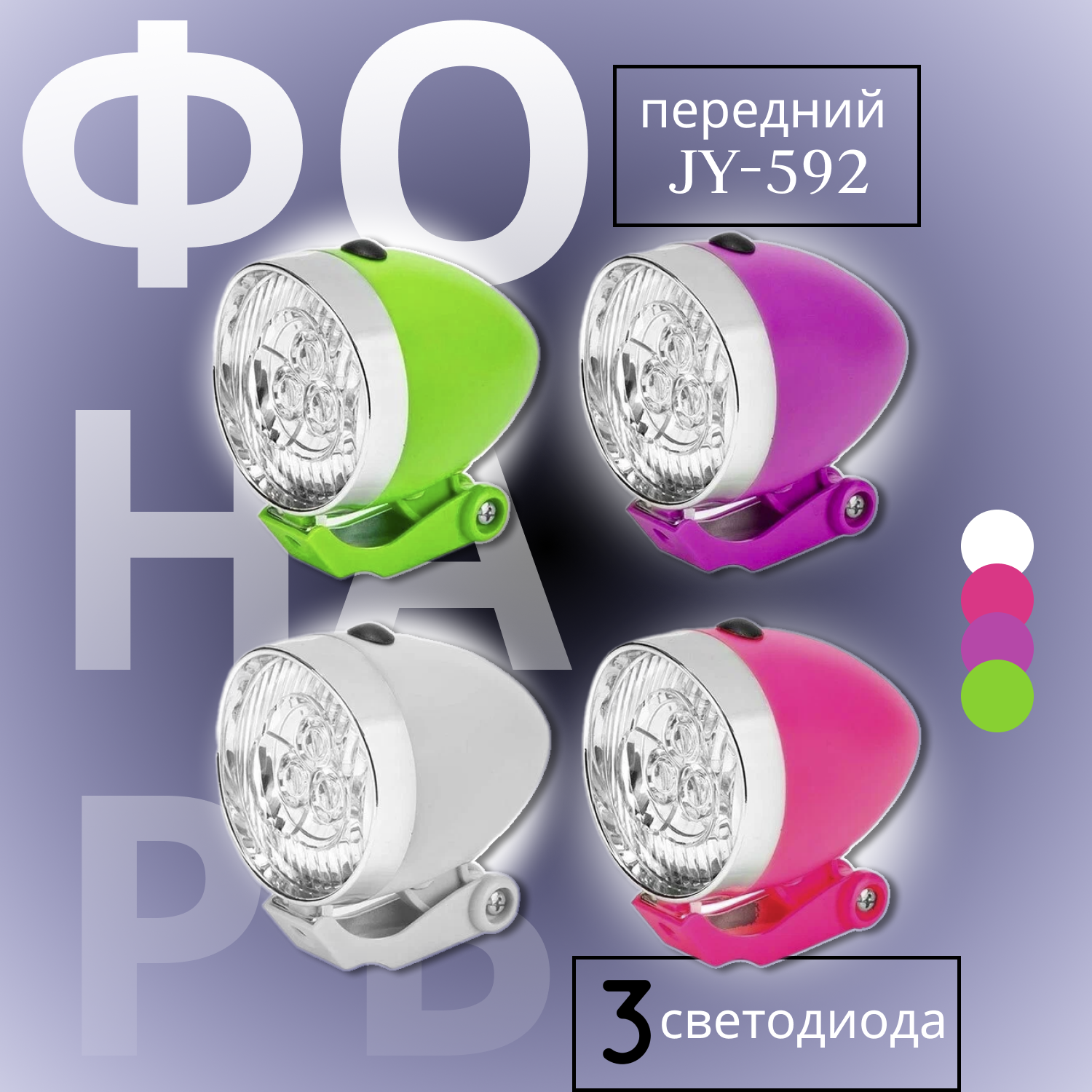 Фонарь передний JY-592 3 светодиода ,цвета в ассортименте информация: