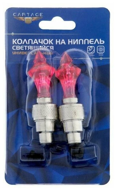 Светящийся колпачок на вентиль Cartage, универсальный, набор 2 шт, микс информация: