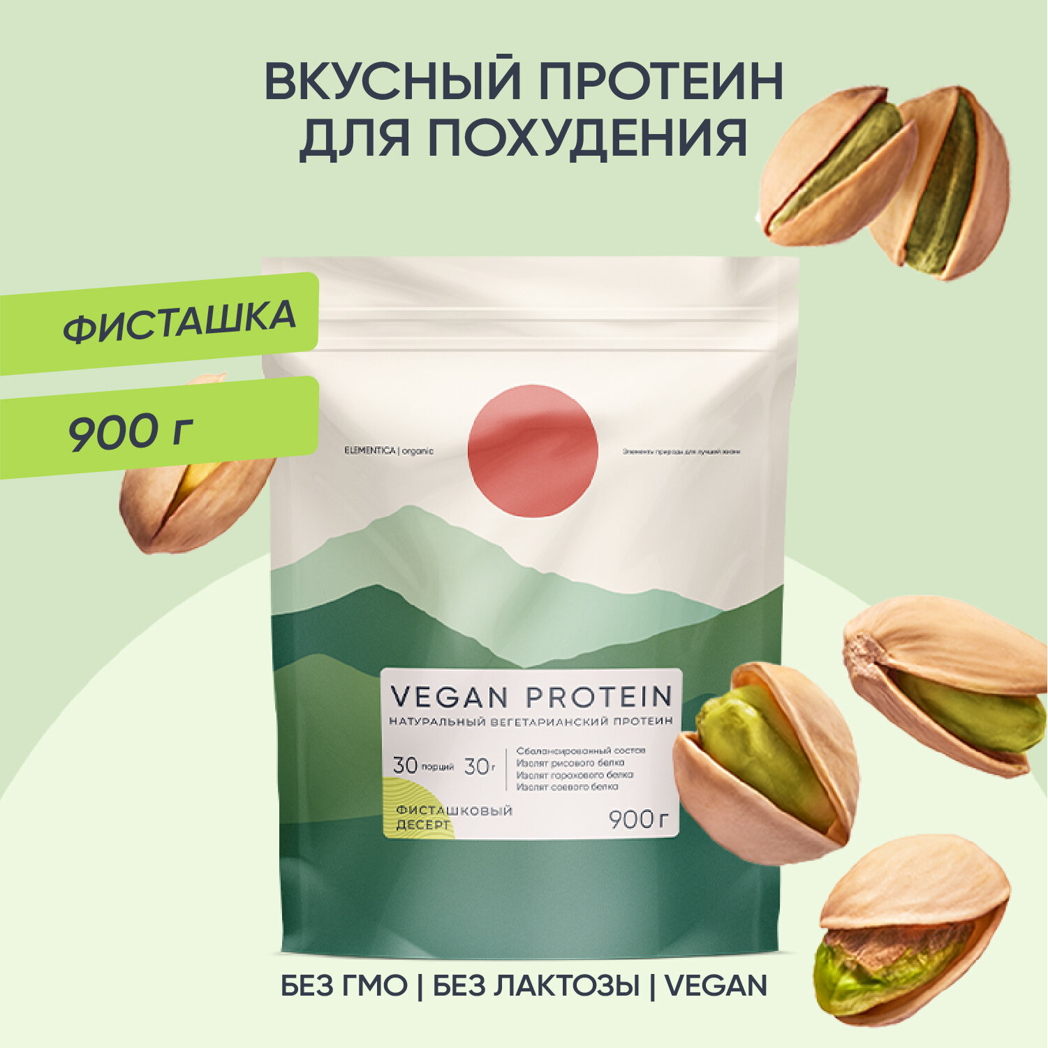 Веганский протеин, vegan protein, изолят, для мышечной массы и похудения, без сахара, порошок, фисташковый десерт, 900 г информация: