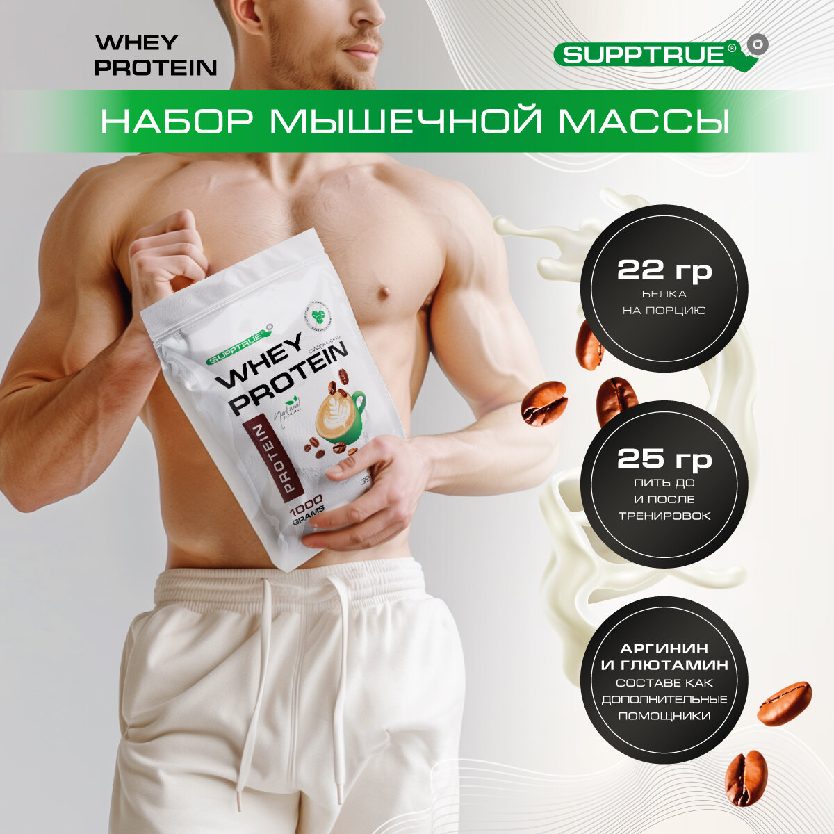 Supptrue Протеин изолят сывороточного белка со вкусом Кофе 1000г информация: