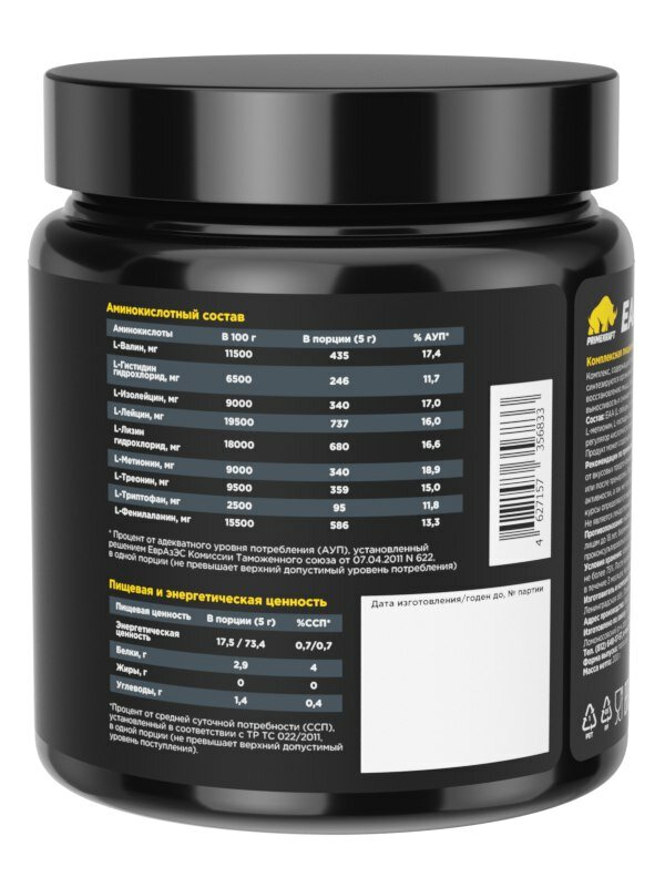 Комплексная пищевая добавка аминокислоты EAA со вкусом «чистый» (pure), банка 200 гр 1 057 ₽