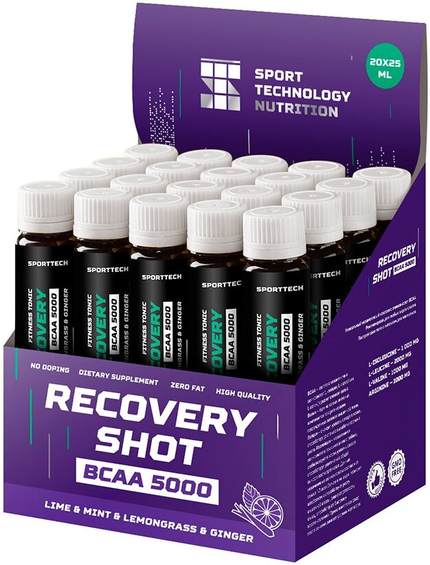 Аминокислоты BCAA (БЦАА), ST, Recovery Shot BCAA 5000, 25 мл, Лайм-Имбирь-Лемонграсс-Мята информация: