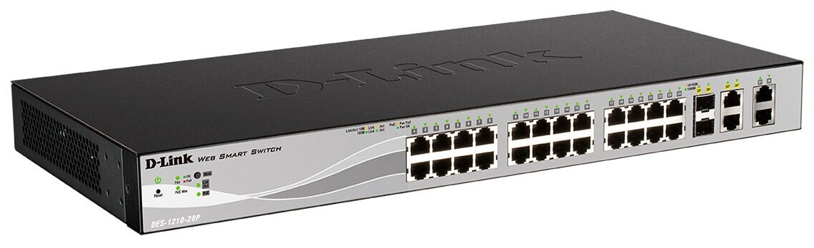 10 цен на Коммутатор PoE D-link DES-1210-28P/C2A 24xUTP 10/100 PoE (193 Вт), 2xUTP Gb, 2хCombo 10/100/1000BASE-T/SFP, rev /C1A, /C2A, /C3A