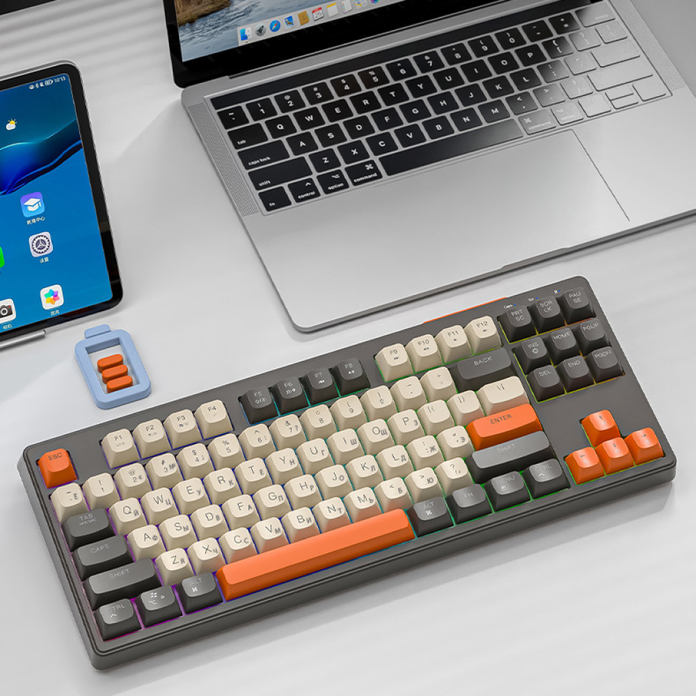 Клавиатура беспроводная с подсветкой Wolf M87 мембранная блютуз для компьютера ноутбука телефона русская английская игровая game/gaming пк/usb 4 490 ₽