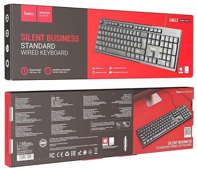 Клавиатура проводная Hoco GM23 Ice Wolf (русские буквы), черная информация: