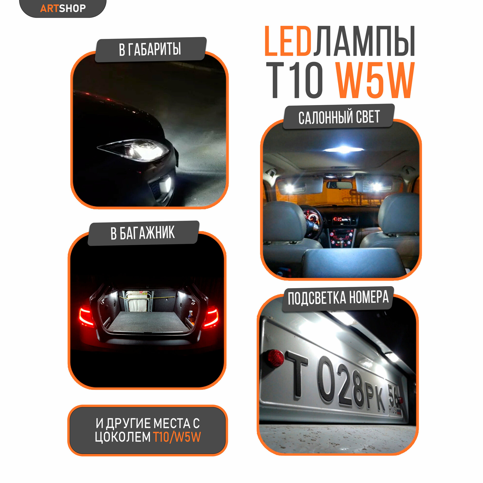 | Назначение | габаритные фонари / освещение багажника / освещение номерного знака / салонное освещение |