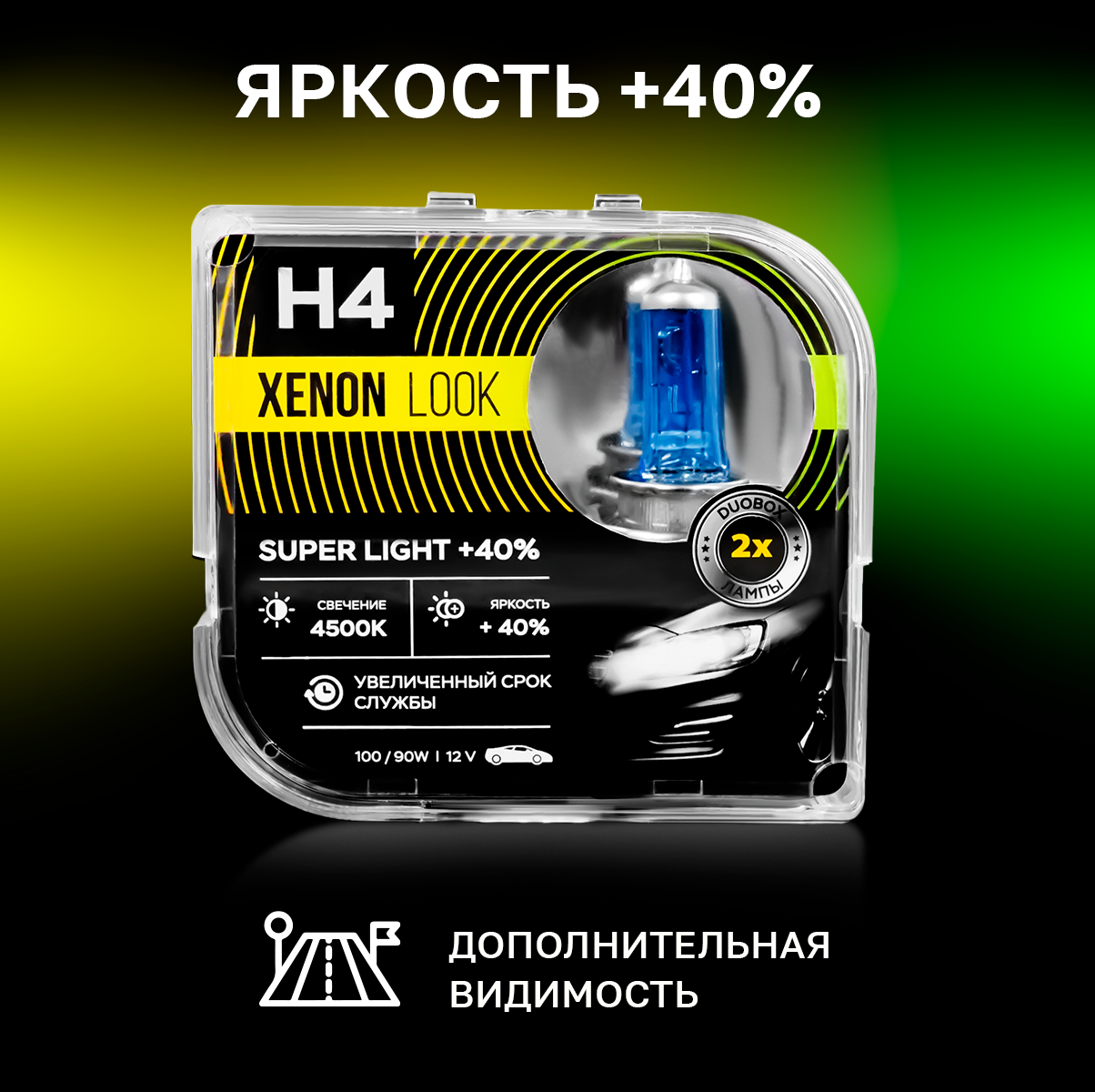 Автомобильные лампы Xenon Look H4 4500K 100/90W 12V Для ближнего и дальнего света. Набор - 2 шт. информация: