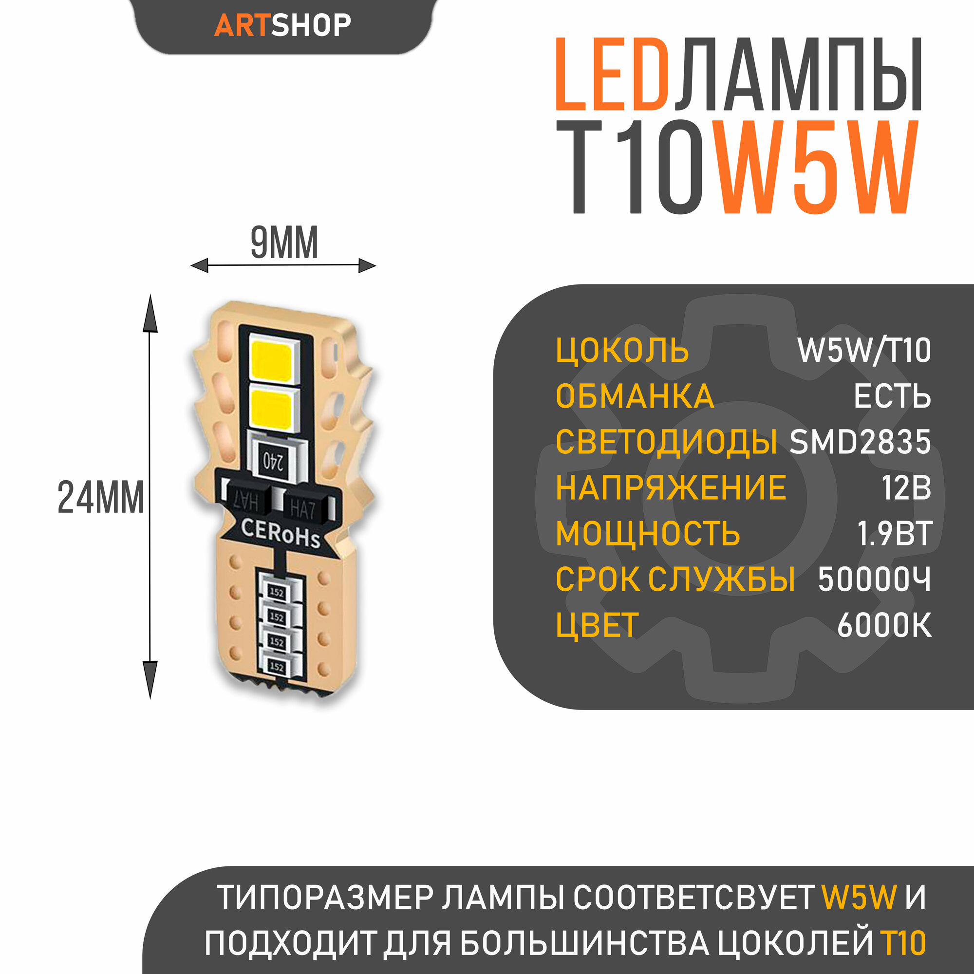 10 цен на LED лампы светодиодные в габариты W5W T10 CANBUS 4SMD