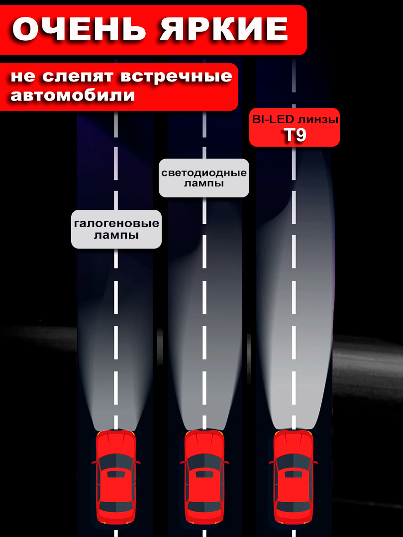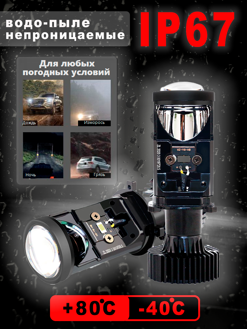 Отзывы на Автомобильные светодиодные LED лампы H4 с линзой, 6000 К, для дальнего и ближнего света, комплект 2 шт., автосвет