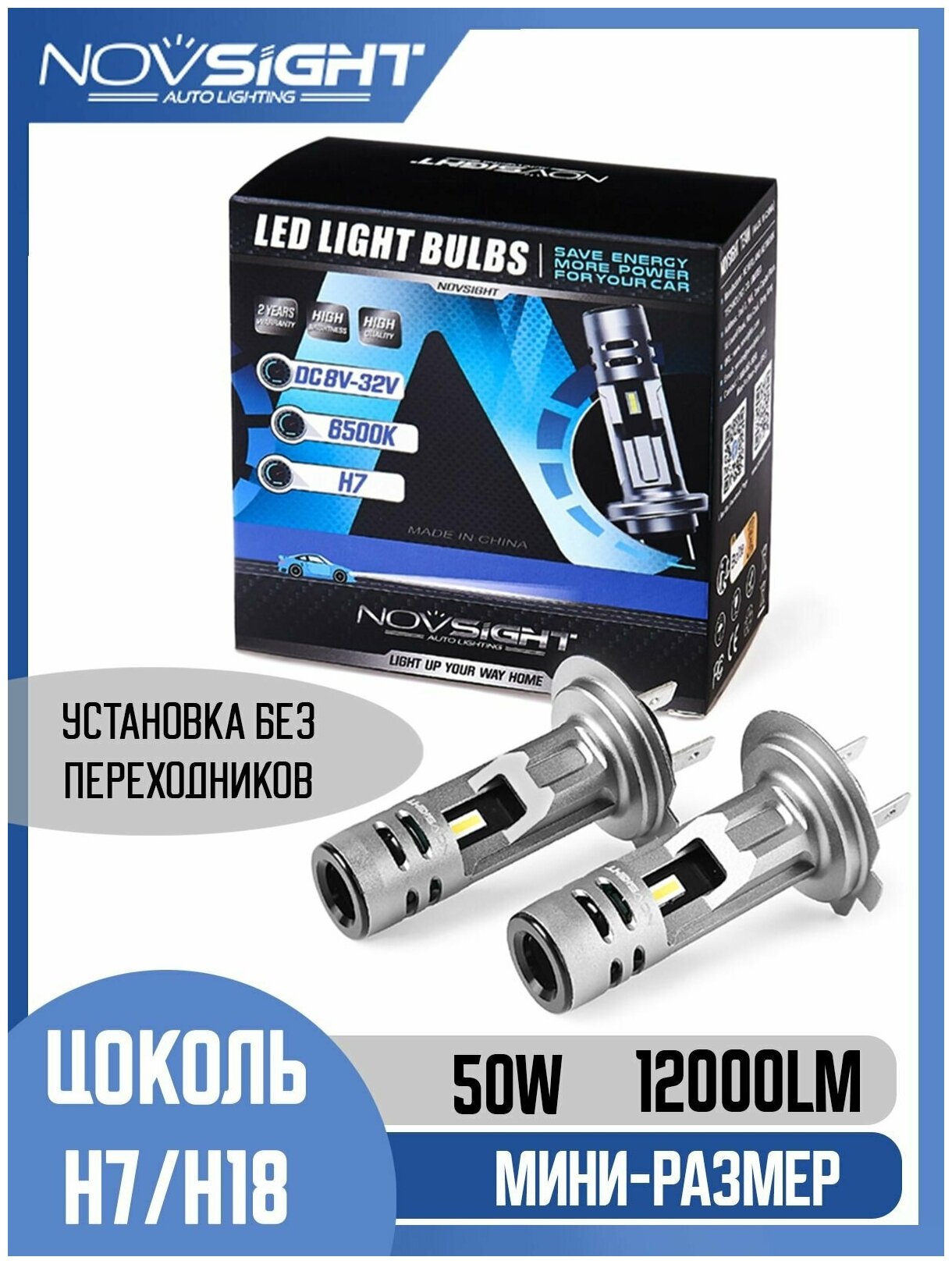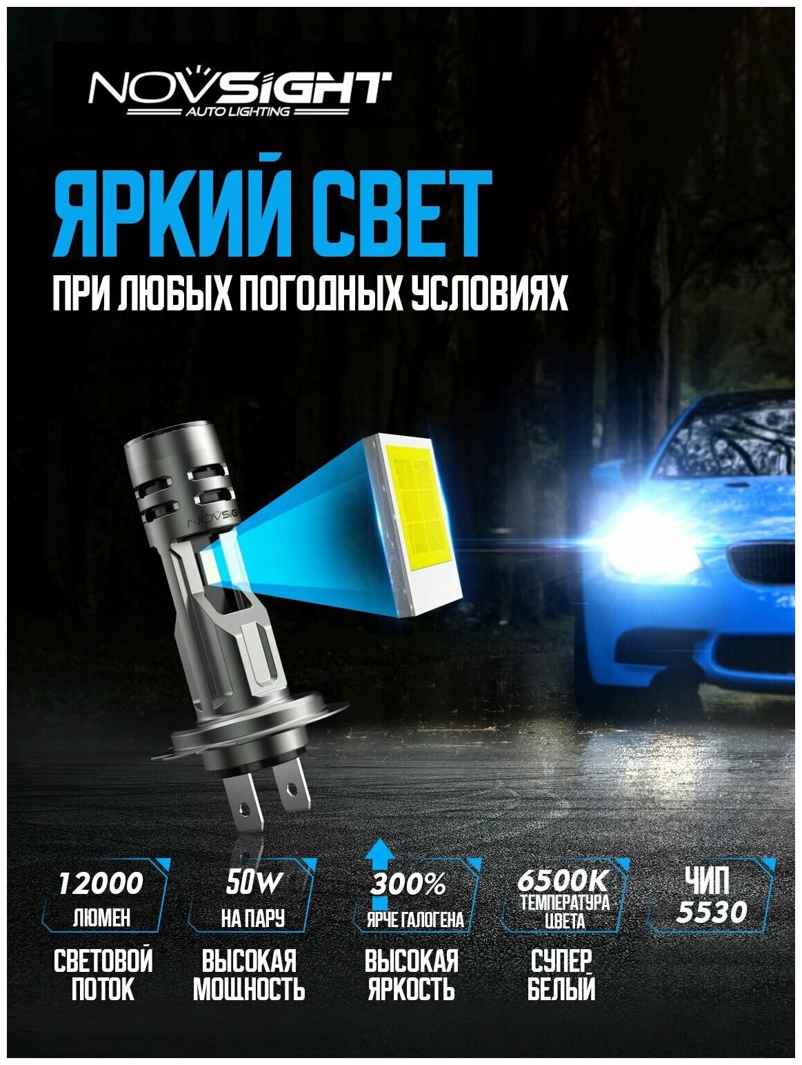 Отзывы на Светодиодная лампа Novsight N58 H7 цоколь PX26d 50Вт 2шт 6000К 12000Лм мини размер белый свет LED автомобильная