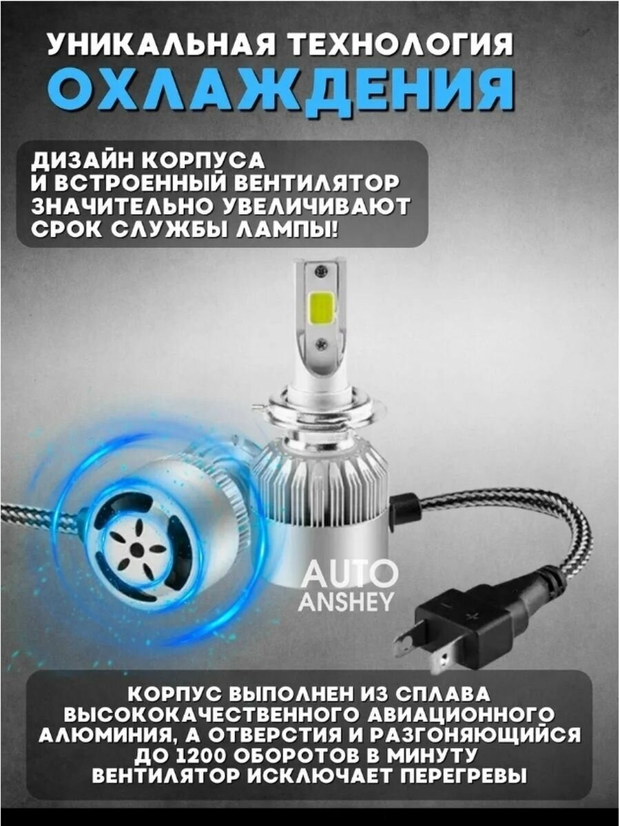 Отзывы на Светодиодные автомобильные лампы LED С6 H7, Автолампы галогеновые 2 шт, 12V