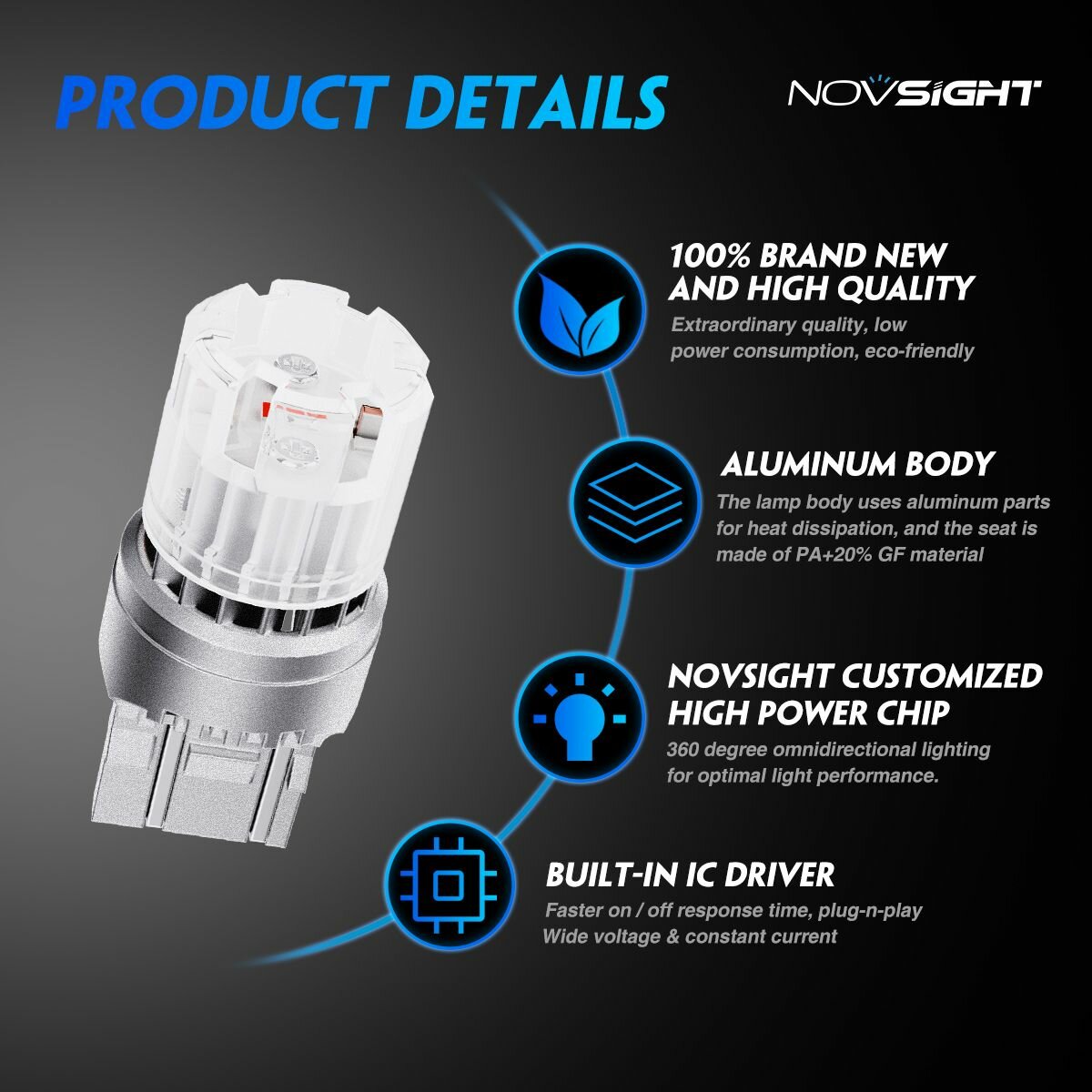 Отзывы на Светодиодная лампа Novsight SL8 T20 7443 W21/5W цоколь W3x16q 2шт двухконтактная красный свет LED автомобильная