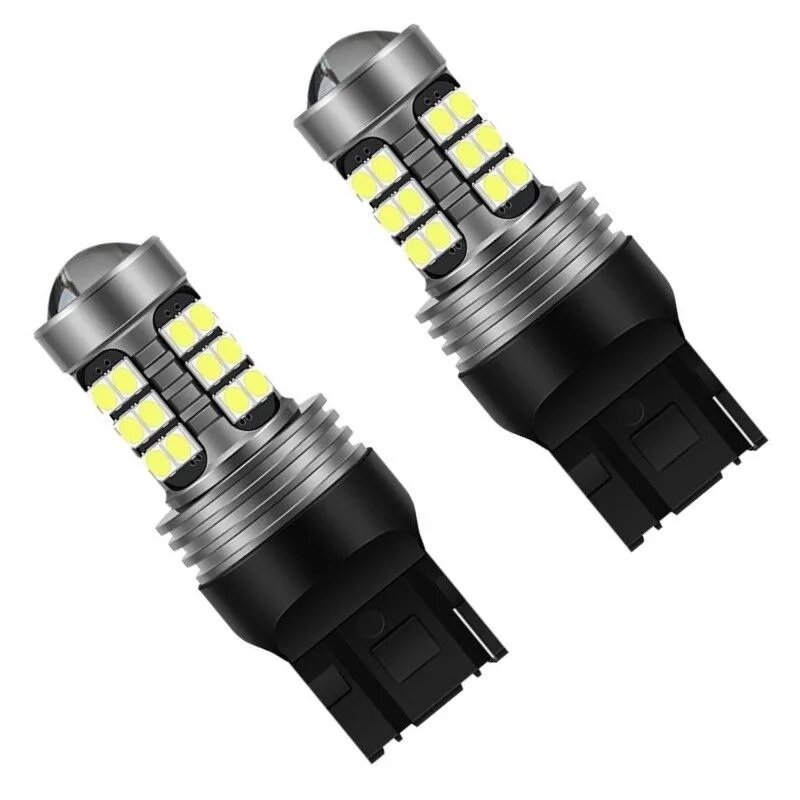 Отзывы на Автомобильные светодиодные лампы с линзой LED T20 W21W 7440 6000K яркий белый свет, в фонарь заднего хода 2 шт.