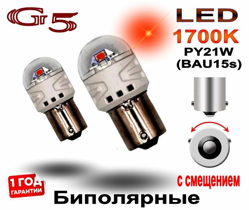 Отзывы на Комплект светодиодных ламп нового поколения G5 LED РY21W (BAU15s) ORANGE (2шт.)