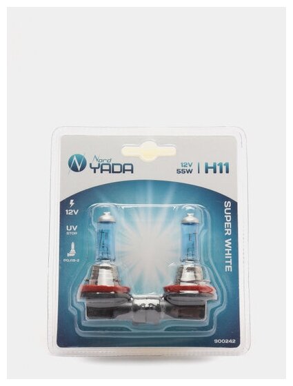 Лампа автомобильная галогенная Nord YADA "Super White", головного света, цоколь H11, 12V, 55W, 2 шт