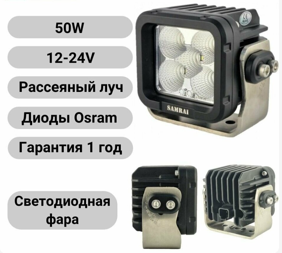Светодиодная фара рабочего света PRO 50 Вт Osram (Flood) LP-1450SF (EMC) широкий луч для спецтехники для внедорожников 9-32в информация: