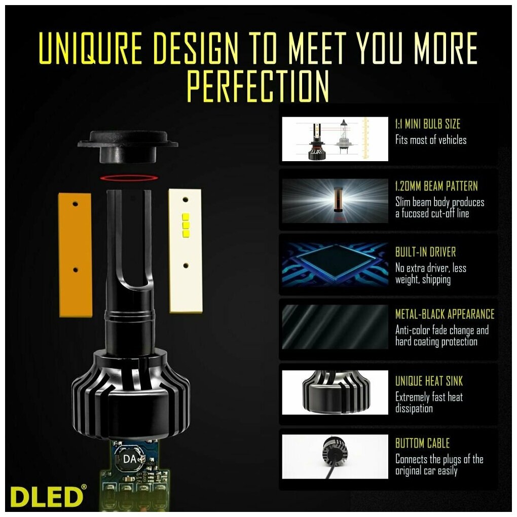 Светодиодные автомобильные лампы H11 PGJ19-2 Бренд DLED GENERAL 1 CSP 3570 Original 6500K (2 лампы)