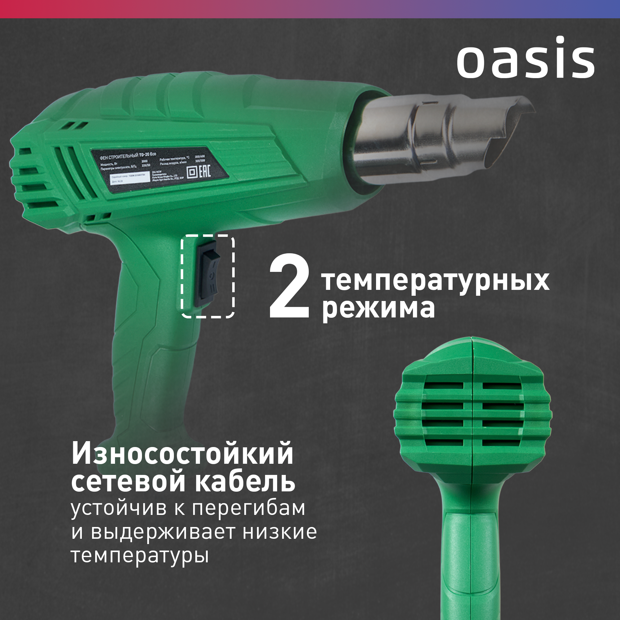 Фен строительный с насадками технический Oasis TG-20 ECO информация: