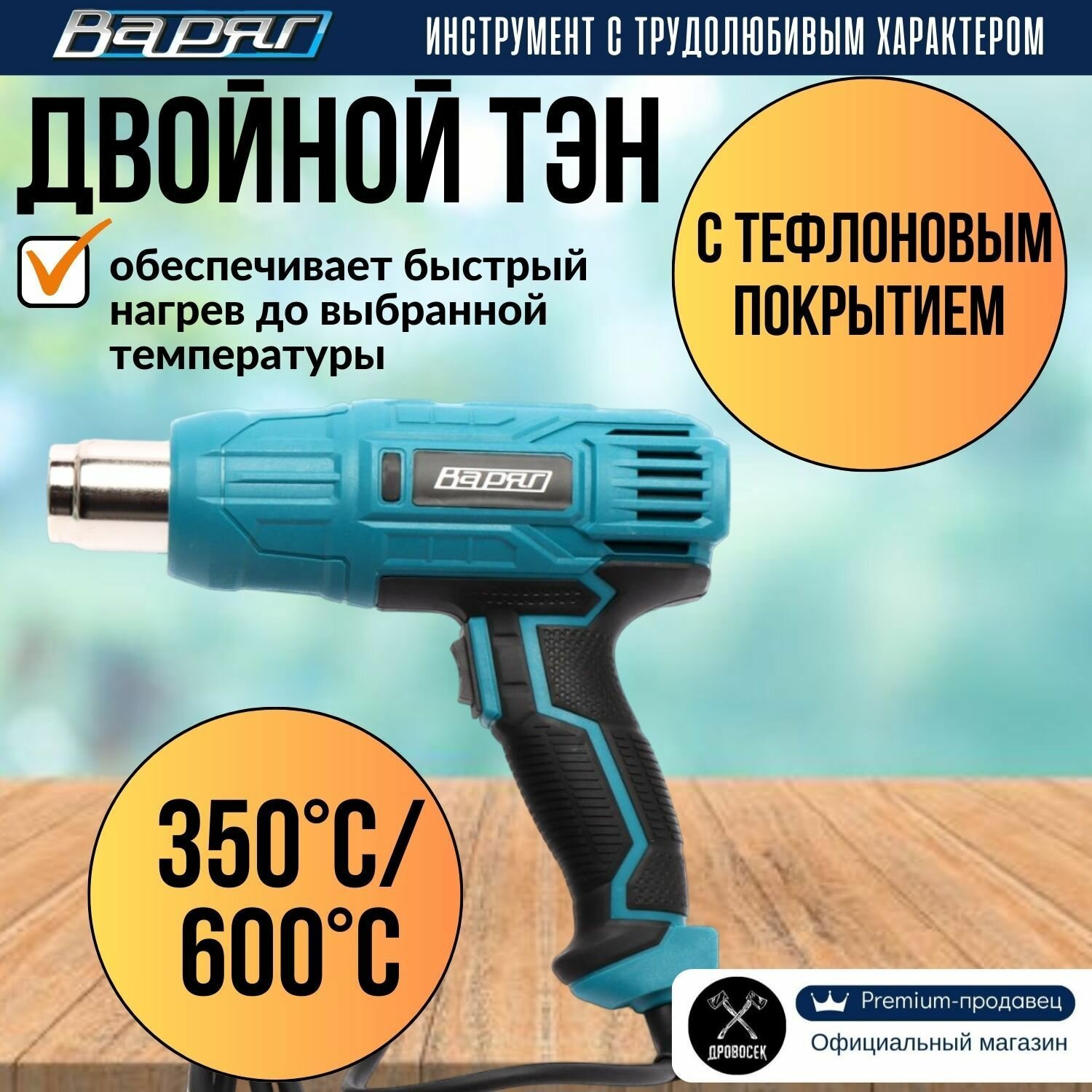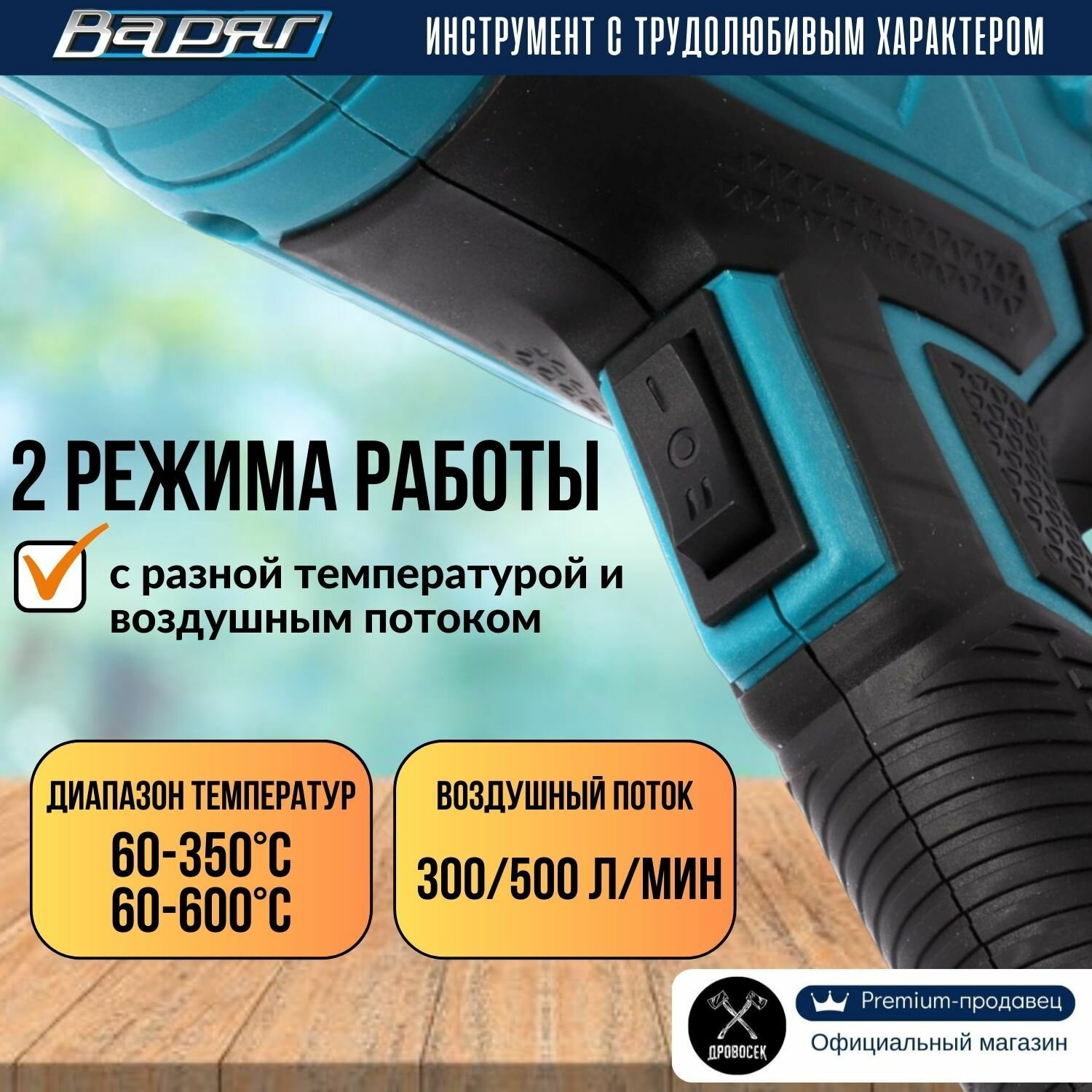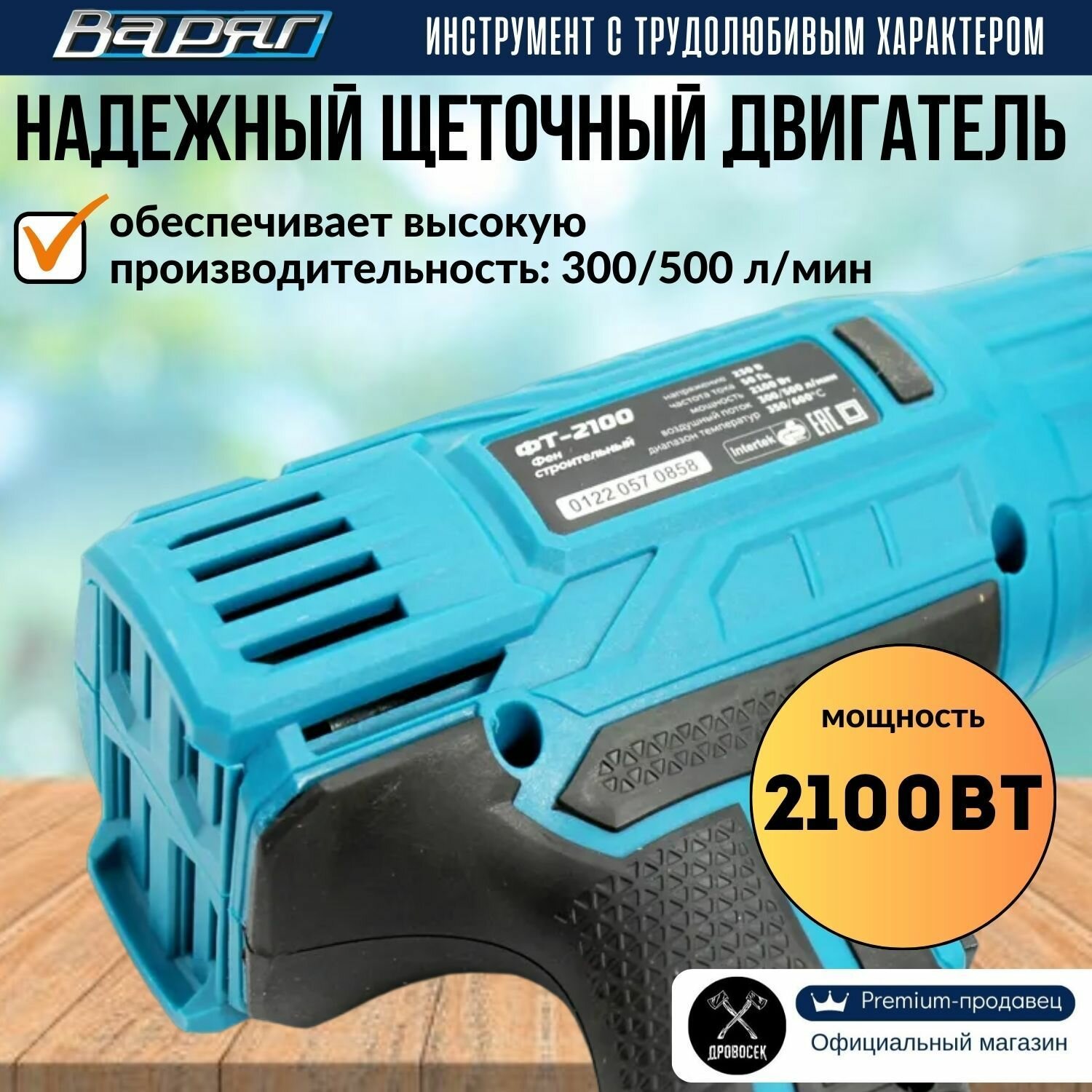 Фен строительный (технический) варяг ФТ-2100 с регулировкой температуры (2100Вт, 2 режима работы, 3 насадки) информация: