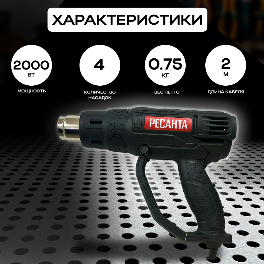 | Назначение | изоляция проводов / подсушивание краски / разморозка труб / размягчение покрытий / сварка пластика / удаление краски / удаление припоя |