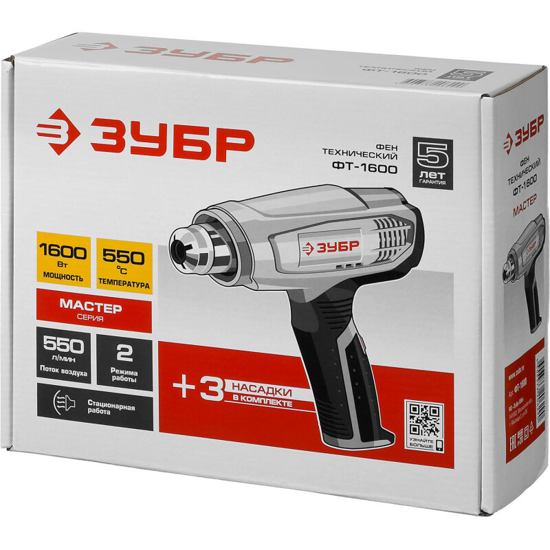 Фен технический ЗУБР ФТ-1600, 3 насадки, 1600Вт информация: