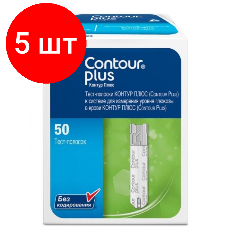 Комплект 5 упаковок, Тест-полоски для определения глюкозы Контур плюс №50, 1-222122 информация: