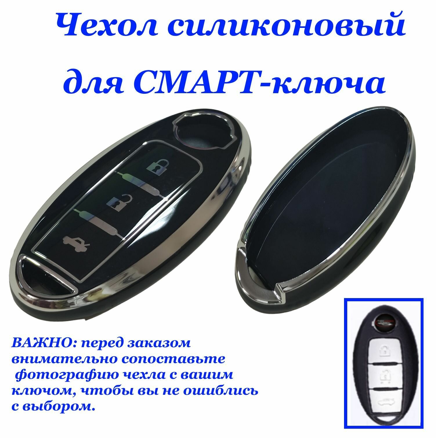 Силиконовый чехол (ключница) для автомобильного смарт-ключа зажигания (цвет черный) TPU- Nissan-45 информация: