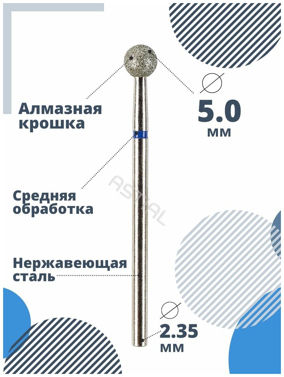 Владмива Фреза для маникюра и педикюра алмазная 806 104 001 524 050 Средняя синяя шар для кутикулы (5 шт) 679 ₽