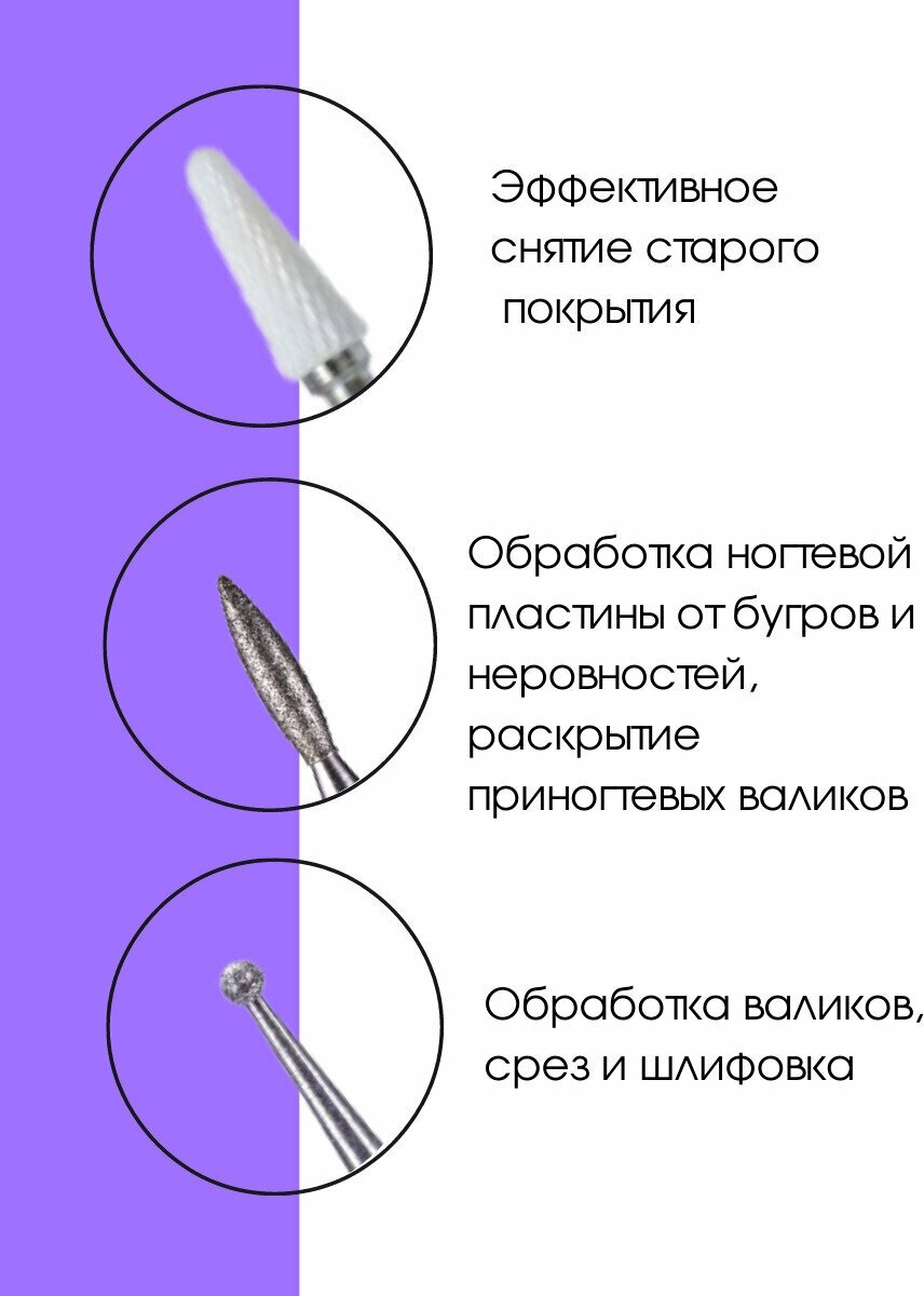 Kaaraanly, Набор фрез алмазных для аппаратного маникюра, педикюра 3шт / пламя / шар / кукуруза информация: