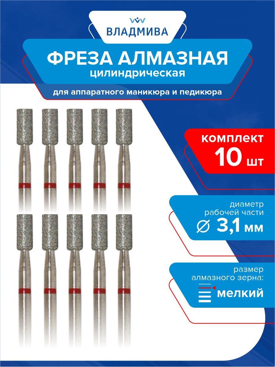 Фреза алмазная цилиндрическая, мелкой зерн. 3,1 мм. Комплект 10 шт. (856.104.107.080.031) информация: